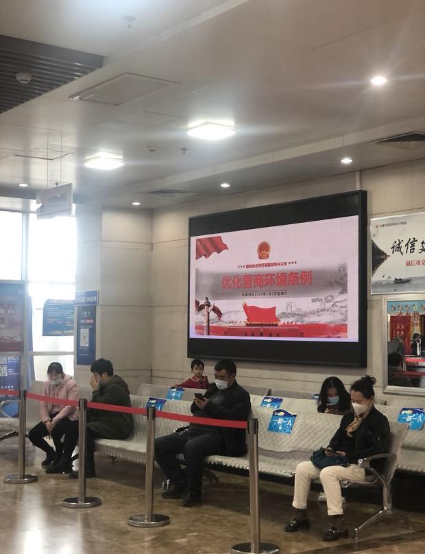 在汽开区政务服务中心电子屏幕上滚动播放《优化营商环境条例》宣传语:“贯彻《优化营商环境条例》 促营商环境提升”和《优化营商环境条例》涉及内容,并在各服务窗口处放置《优化营商环境条例及解读汇编》手册,窗口工作人员对前来办事的企业和群众进行简单讲解和介绍,让他们对优化营商环境有了一定的概念和认识,也成为优化营商环境的宣传员,大大地提高了宣传效率和宣传效果。
