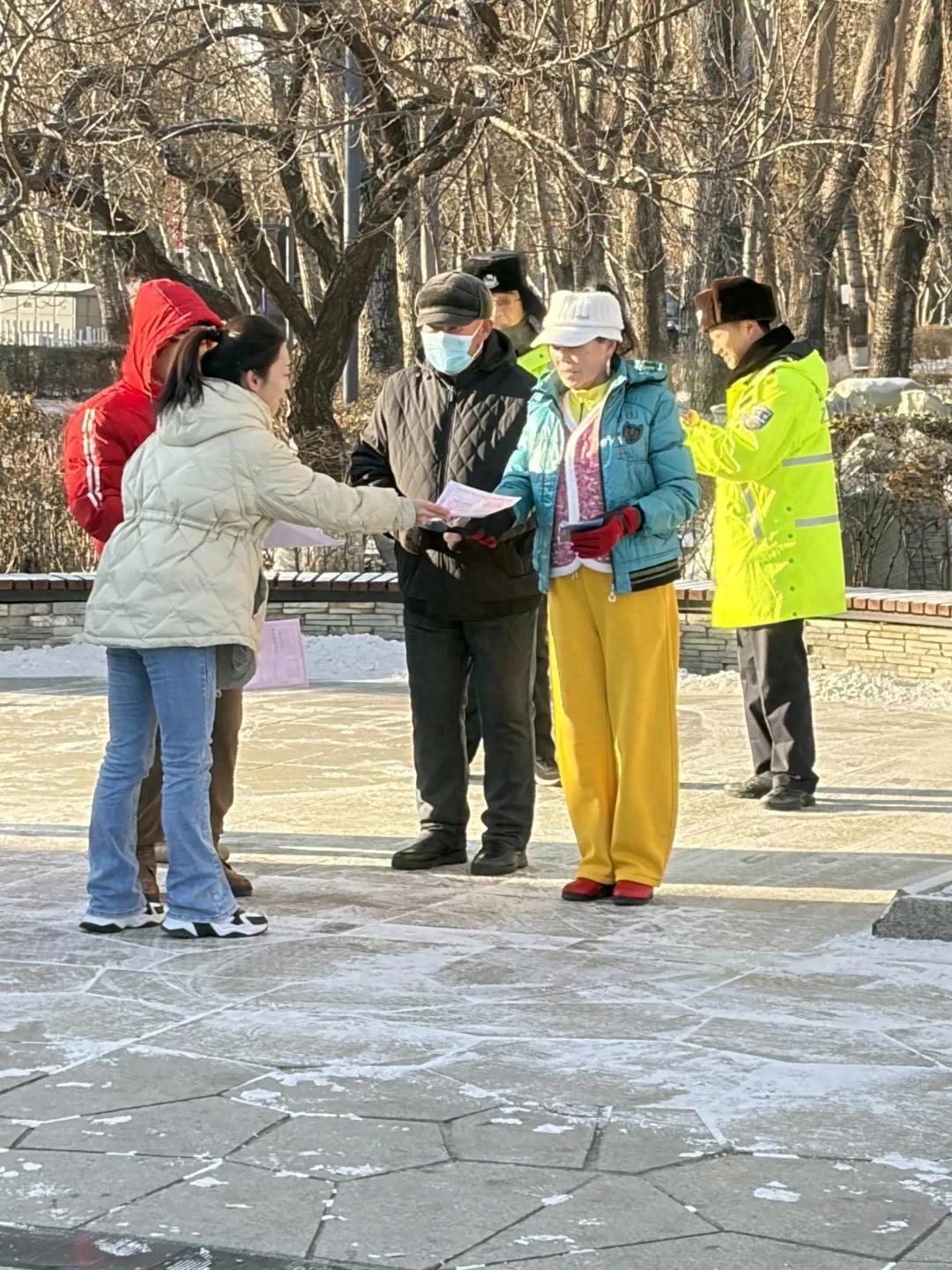 本次活动,针对外卖配送员等新就业形态劳动者群体,街道在“幸福汇”工会服务站举办交通安全宣传活动,聚焦其日常出行高频风险场景,由交警结合典型事故案例,讲解闯红灯、逆行、不规范佩戴头盔等交通违法行为危害,演示头盔正确佩戴方法与骑行防御性驾驶技巧。此外,在岱山公园组织开展普法宣传活动,通过发放宣传单、互动问答等形式,解读交通相关法律法规,交警结合冬季出行特点剖析酒驾等违法案例,解答电动车上牌等热点问题。