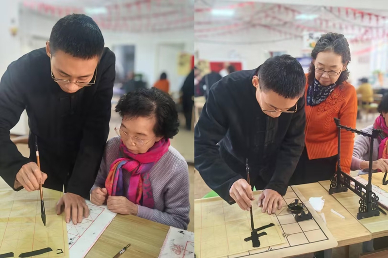 课堂上,老人们学习热情高涨,个个神情专注。他们手握毛笔,凝神静气,在宣纸上一笔一画认真练习,反复揣摩笔法精髓。有的学员时而相互交流创作心得,时而向老师请教技巧要领,现场氛围热烈而和谐。经过一番练习,一幅幅楷书端庄规整、行书流畅自然的作品相继诞生,字里行间满是老人们对书法艺术的热爱与对美好生活的期许。活动尾声,大家纷纷展示自己的得意之作,相互欣赏、交流借鉴,脸上洋溢着满满的成就感与幸福感。