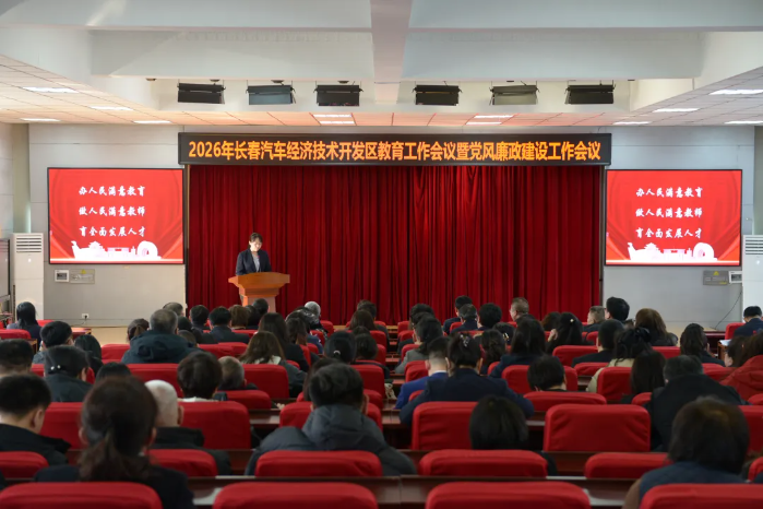 3月19日,汽开区召开2026年教育工作会议暨党风廉政建设会议。会议深入学习贯彻党的二十大和二十届历次全会精神,认真落实省、市教育工作会议部署,总结回顾过去一年工作,聚焦“十五五”时期教育改革发展目标与重点任务,安排部署2026年全区教育重点工作。汽开区管委会副主任盛新春出席会议并讲话。