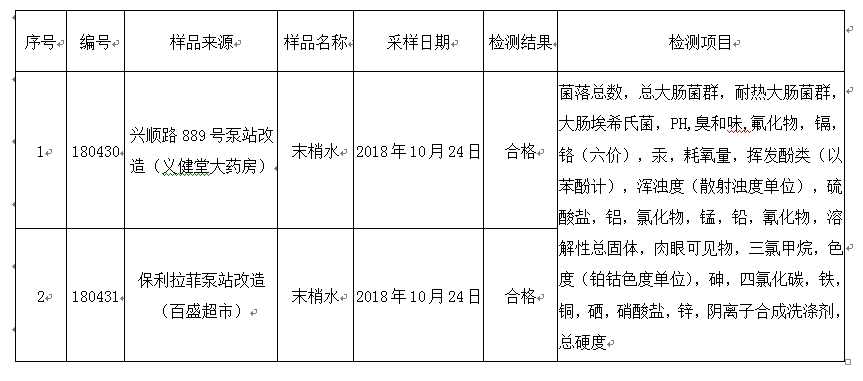 按照《长春市落实水污染防治行动计划工作方案》和《生活饮用水卫生检测标准》(GB5750-2006)的要求,汽开区疾控中心对城市二次供水设施改造工程水质卫生状况进行监测,样品送到长春市疾病预防控制中心实验室检测,现将水质检测结果公示如下: