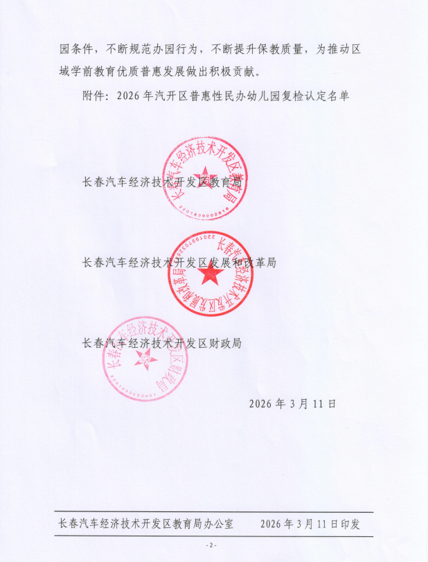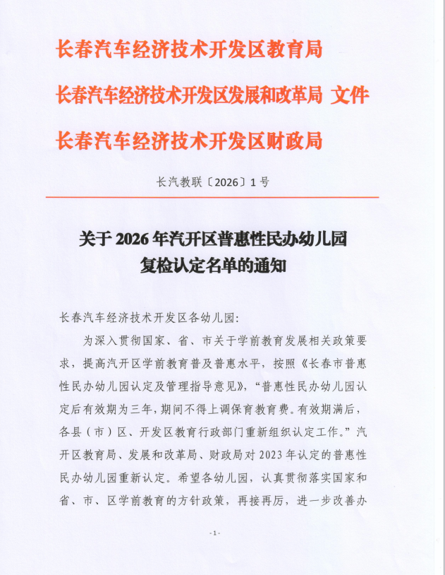 关于2026年汽开区普惠性民办幼儿园复检认定名单的通知