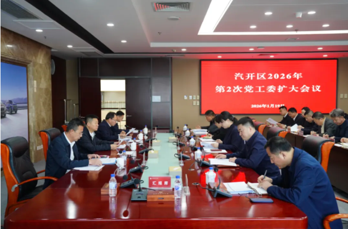 1月19日,汽开区党工委书记李国辉主持召开2026年第2次党工委扩大会议,传达学习习近平总书记重要讲话精神,研究部署重点工作,为“十五五”开局之年各项工作定向领航、凝心聚力。区党工委副书记、管委会主任王华参加会议。