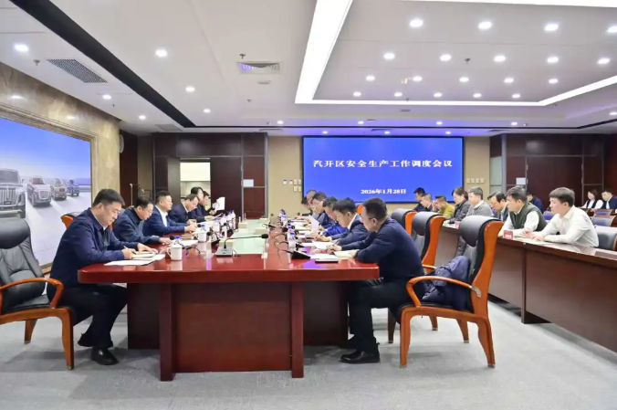 1月28日下午,汽开区党工委书记李国辉主持召开全区安全生产工作调度会,深入学习贯彻省委、市委关于岁末年初及2026年春节期间安全生产工作的部署要求,强调要以“事事落实到位”的执行力织密筑牢安全防护网,全力维护人民群众生命财产安全和社会大局稳定。区党工委副书记、管委会主任王华出席会议并作工作部署。