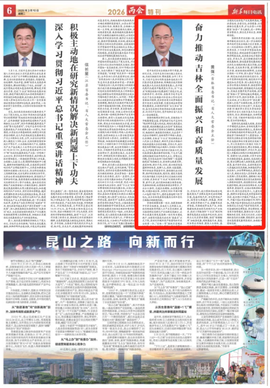坚持创新驱动第一动力,在提质焕新中守牢实体根基。吉林是人文科教大省,我们畅通教育科技人才产业良性循环,着力推进科技创新同产业创新深度融合,去年全球最大绿色氢氨醇一体化项目建成投产,全国首列氢能文旅列车“氢春号”正式下线,吉林化纤碳纤维产销量均跃升至全球第一位,“吉林一号”组网卫星增至144颗,规上工业增加值增幅居全国第七位。开局之年,我们将把因地制宜发展新质生产力摆在更加突出的战略位置,改造升级汽车、石化等传统产业,培育壮大新能源、新装备、新材料、新医药等新兴产业,前瞻布局具身智能、生物制造等未来产业,加快构建体现吉林特色的现代化产业体系。政府工作报告和“十五五”规划纲要草案高度关注氢能开发利用,我们将立足风光资源禀赋,推进“制储输用”全链条发展,创新氢能汽车、氢能列车等应用场景。聚焦工业母机、高端仪器等关键核心技术攻坚突破,全力建设光电信息产业发展新高地。做好冰雪运动、冰雪文化、冰雪装备、冰雪旅游融合发展文章,扩大冰雪人口规模,探索“冰雪+”多元路径,进一步释放投资消费潜力,催生更多新业态、新模式、新动能。